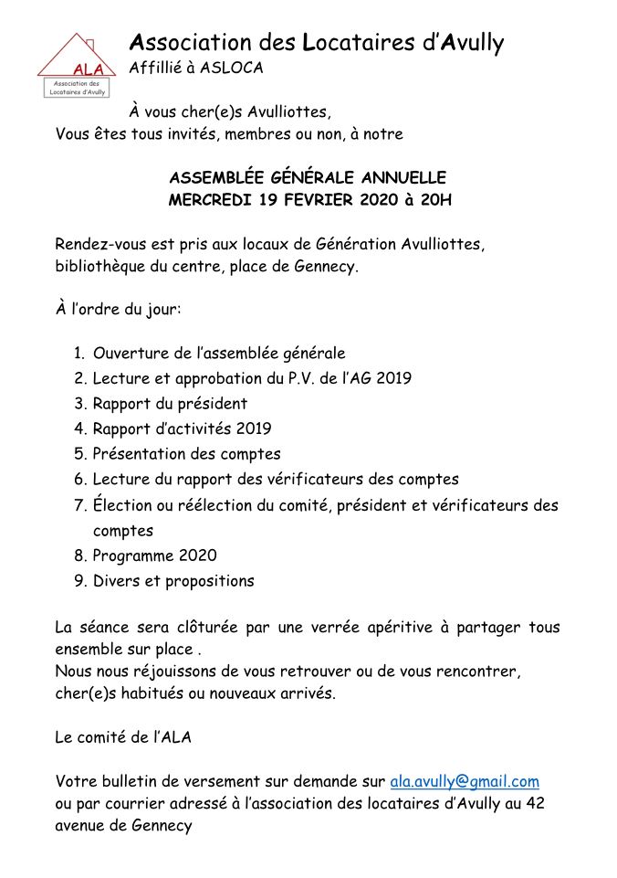 Cher-e-s affilié-e-s, Cher-e-s habitant-e-s, L’ALA et son comité, vous informe devoir cette année organiser différemment son Assemblée Générale, à cause des mesures sanitaires actuelles dues au COVID-19. En effet, nous …